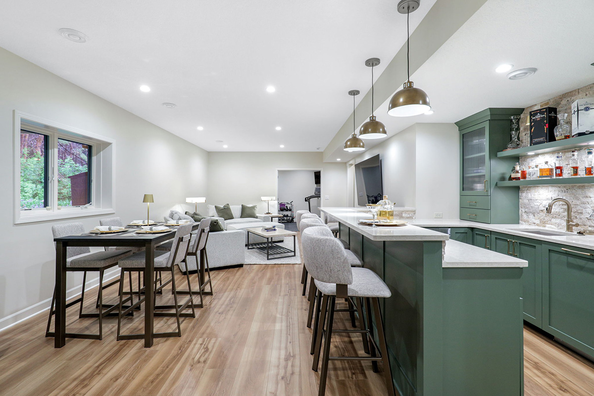 Our lower-level renovations transform underutilized basements into thoughtfully designed spaces that feel warm, functional, and connected to the rest of the home. From custom bars and media rooms to guest suites, home gyms, and play areas, each space is tailored to how you want to live and gather.
