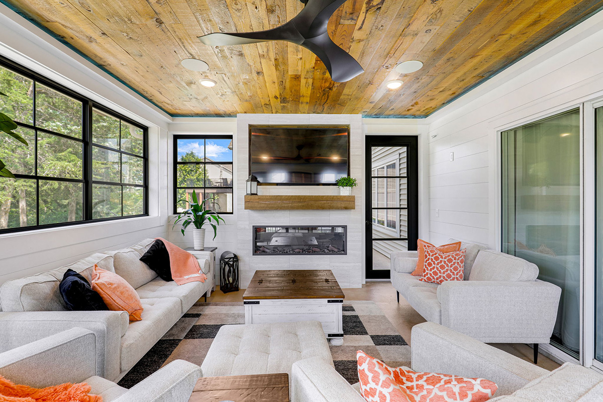 Our porch and outdoor living renovations are thoughtfully designed to feel like a natural extension of your home. From covered porches and screened-in spaces to fireplaces, custom ceilings, and integrated lighting, each project is tailored for both everyday living and effortless entertaining.